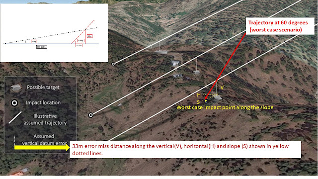 The fundamental issue which has been raised is that the slope was steep. The slope has not been factored in. Had it been factored in the miss would have been 100m as claimed by the Australian Researcher.