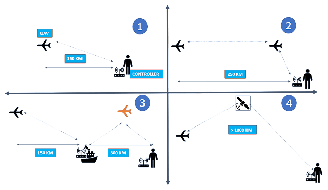 Control Plan of UAVs. This is where the plan gets interesting. A UAV needs to be controlled. Normally they are controlled from ground. When controlled from ground, the range of the UAV would be a maximum of 150 km, which is the effective line of sight communication range (see 1). Beyond that the range can be increased to about 250 km through an aerial relay (see 2). In this case such a tactic was not used since the aerial relay UAV would be a dead giveaway. The other option is to launch the UAV from the Iran coast and fly across the Gulf. Midway, hand over its control to a forward controller(s) on a ship off the Coast of Saudi Arabia (see 3). This forward controller(s) can then guide the UAVs to their targets. A ship off the coast of Saudi Arabia in the Persian Gulf would be approximately 50 km from Abqaiq and 150 km from Khurais. Hence ship based controller(s) will enable both targets to come within range. Yet another option is to control the UAVs through a satellite (see 4). SATCOM operations as they are known, require a complicated and a highly technically enabled UAV. The problem with SATCOM is that, any cloud interference could have interrupted operations. For any single shot operation like this, SATCOM control becomes too ‘iffy’. My appreciation is that the UAVs were handed over to a forward controller on a ship. The last option is of course to have a forward controller near the target. That means physical insertion and placement of a controller at least in between / near one or both the oilfields. A risky option which cannot be ruled out.