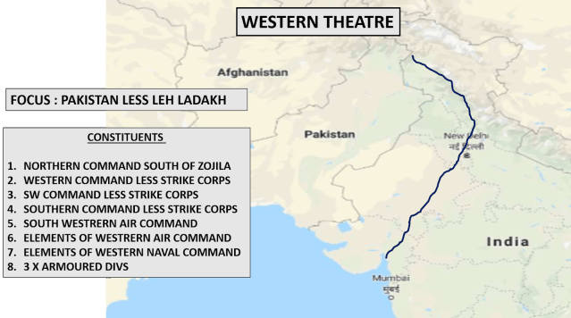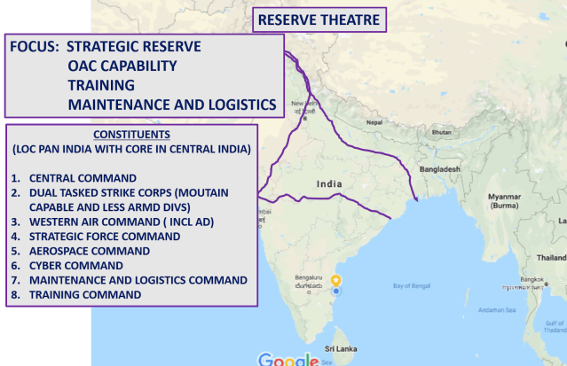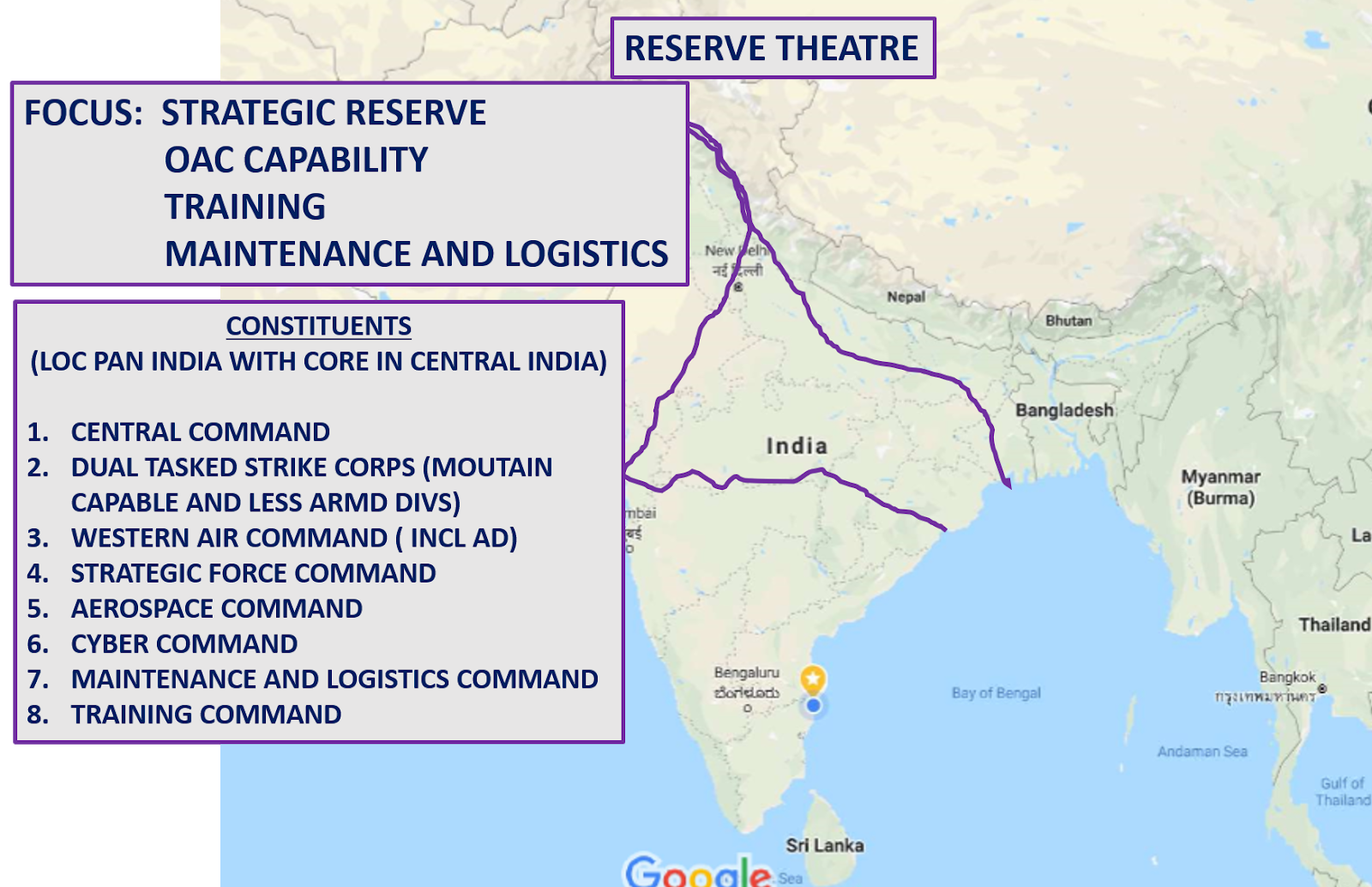 Having had the privilege and the good fortune of serving along almost of our borders including most parts of the LAC, some parts of the LOC and significant parts of our International Borders, I have been thinking as to how will theatres and joint commands shape up in future. I have conceptualized them in these maps. I have left a lot unsaid. In my opinion the fact that India needs to have a single theatre facing China and Pakistan each is no brainer. Also, a single theatre to handle the IOR is pretty much obvious. The debatable point is that will it need a fourth Theatre? In my opinion it needs a Reserve Theatre which will anchor the other Theatres. In effect it will be India’s strategic reserve. Anyone who understands warfare will also understand that Reserves indicate the true play and stamina of any nation’s Armed Forces. It induces great flexibility and gives a great window of opportunity to apply the best principles of the Air Force, which might otherwise be lost in the din of jointness. I am not giving great details or logic as to what the constituents of the theatres will be. However it is also obvious the new theatres will be rearrangement of existing Commands. Whether additional Theatre HQs are needed or not is a matter of evolution. Let us be open about it. If necessary, we should have them as additionalities.