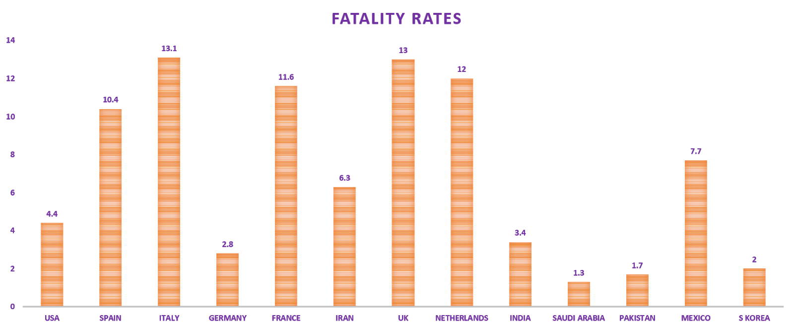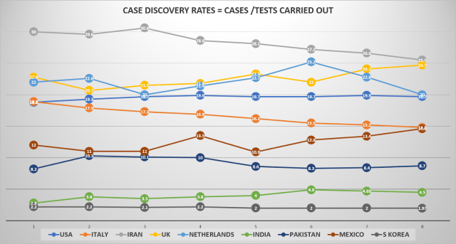 Case Discovery and Mortality. The percentage of cases detected for the tests carried out and the percentage of mortality/ deaths for the cases detected is compiled from 05 Apr, till date. It is given in the graphics below in comparison with other countries and for some states taken as a random cross section.