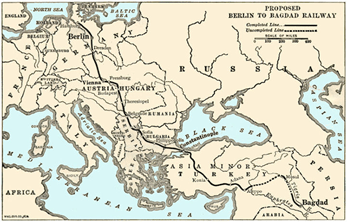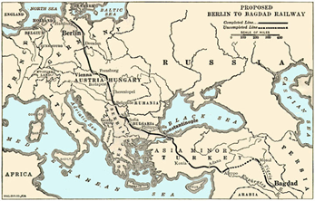 The 19th century Europe saw great opportunity in the resources of a weakening Ottoman Empire. The Ottoman agricultural system could whet European food requirements. Minerals (Chrome, antimony, lead and zinc mines and some coal) and abundant oil of the Middle East were on offer. Hence a transcontinental rail link through the Ottoman Empire was conceived with Britain, France and Germany competing. Ultimately, the Germans won out. Work began on the Berlin-Baghdad Railway in 1903.