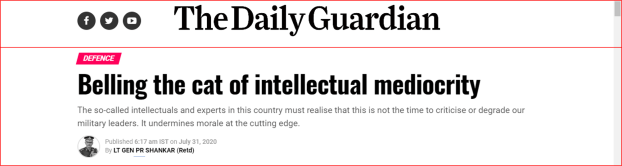 Mr Guruswamy’s intellectual discourse on military leadership is a reproduction of his earlier diatribe titled ‘Military Incompetence – Who Will Bell the Cat’ in Jul 18 (also published by the citizen.in).  What is the difference between these articles? ‘Incompetence’ has been replaced by ‘Mediocrity’ over two years.  Congratulations India! Your military leadership has graduated from incompetence to mediocrity while Mr Guruswamy and the Citizen are belling the same old cat.  This new article with a few changed sentences, a paragraph on Fd Marshal Manekshaw and a dimwitted effort of Cut, Copy and Paste will put us on the way to global military leadership.   Such intellectualism is below mediocrity. It is mendacity for attention. I must also hand it to the editorial staff of the media platform who re-published such scurrility.  Even ‘Global Times’ is miles ahead in comparison. This represents only one of the two things. Poor journalism or ulterior motives. No third reason.  Plumbing new depths of intellectual idiocy to seek relevance!