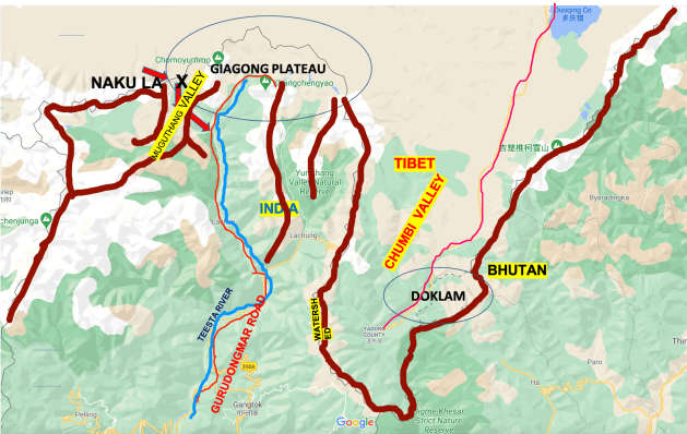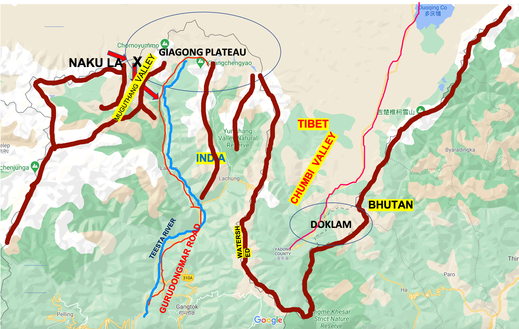 If there is one thing that India does not want – it is Chinese presence in / threat to the Siliguri Corridor (Please also see my article Face-Offs : Matrix Ahead ). Conversely, if there is one thing China does not want, it is any Indian offensive design into Tibet or continued domination of the Chumbi Valley. Naku La is critical to both these. Naku La sits at the head of the Muguthang Valley, which is an isolated valley parallel to the Giagong Plateau. The Muguthang Valley outflanks Giagong Plateau. Chinese deployment in Muguthang can interfere with our forces in Giagong and inhibit our offensive options into Tibet. Shigatse, the main Chinese base and the Tibet- Nepal road are around 140 km from Giagong (within missile range). Muguthang also provides access to the Gurudongmar Road, North of Thangu Valley. Some passes on the intervening ridge enable an indirect approach to the Gurudongmar Road. A block on this road will cut off Indian Forces deployed on the Giagong Plateau. It also enables Chinese offensive options into Sikkim. This will broaden the base and reduce the vulnerability of the Chumbi Valley. It will assist enormously to complement any thrust through the Doklam area. The Chinese are repeatedly probing here. Naku La will be a constantly contested and sensitive area in future also. China is desperately wanting to enter Muguthang through Naku La. Our forces were alert to Chinese designs. Good show once again.