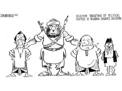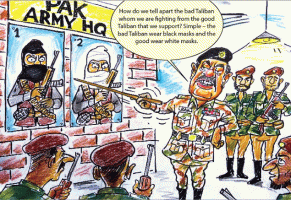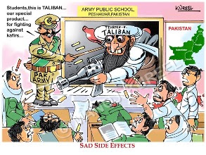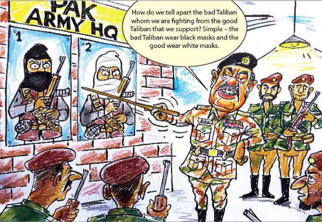 Many of you will wonder that this article is garbled and cockeyed with out any semblance of logic or purpose. I agree. It is definitely so. It is based on Pakistani writers and their views and their cartoons on an international issue called Afghanistan which is equally senseless and confusing. There is nothing original in this article except the staple produce of Pakistan – The Taliban!