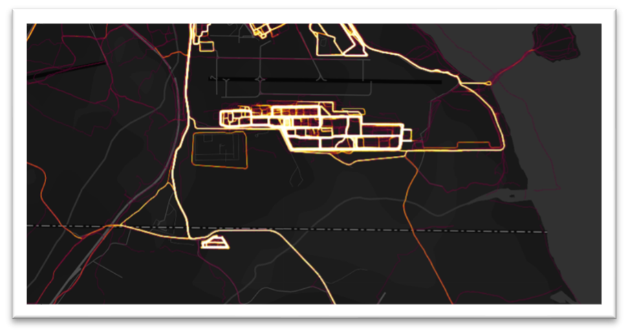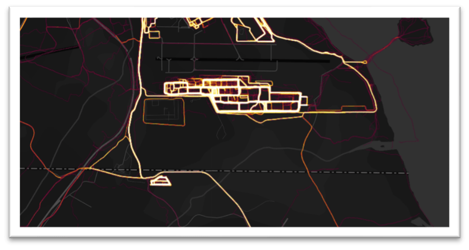 If the AI system has inputs from fitness related apps in smart phones and also the heat maps, optical sensors, synthetic aperture radars and other digital inputs of Army installations from satellites, one can get an accurate layout of any military establishment and also get to the intent of its personnel. This has been highlighted in an article in the business insider where a map of fitness tracker data may have compromised top secret US military bases around the world. A picture from that article is reproduced below.