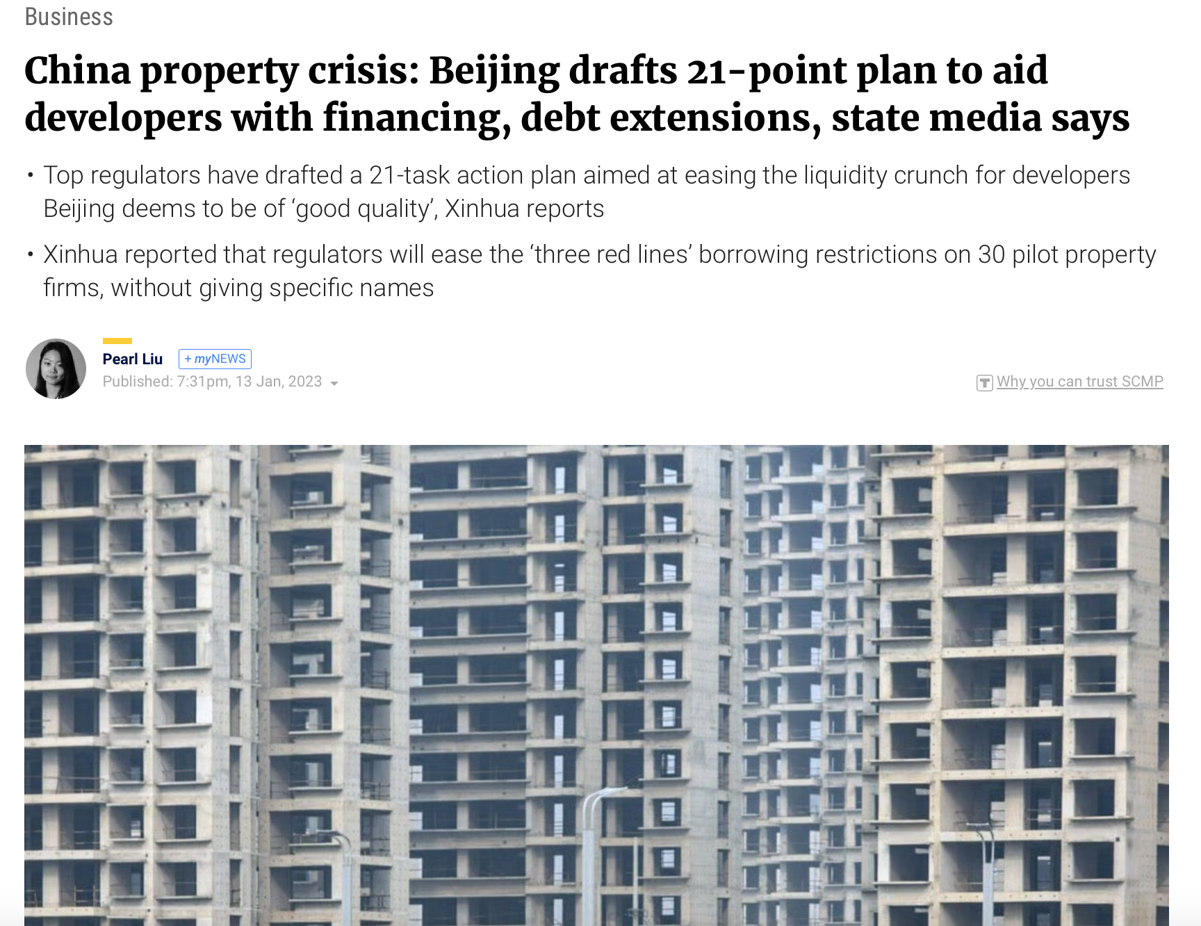 Besides heavy weights like Evergrande and Kaisa many other developers, including Fantasia Holdings Group, Modern Land (China) and Sinic Holdings Group, have defaulted on their debt in recent weeks. The excerpts of articles from SCMP which I have put out tell their own story.