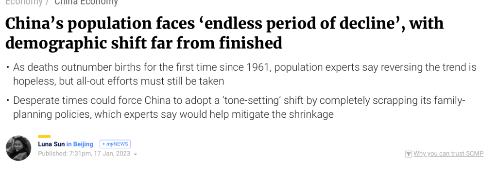 As I was about to post this article two issues came to my notice. Firstly China’s population is in permanent decline and Secondly its GDP has slumped. Once you finish reading this article , please also have a look at my previous post on decoupling @ https://gunnersshot.com/2023/01/07/a-peek-into-every-day-china-decoupling-blues/ , you will realise that China’s decline has really started.