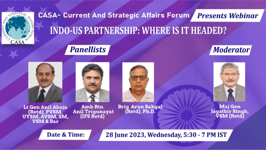 The CASA webinar on the India USA partnership was of the highest quality and gives tremendous clarity on where the India US partnership is headed.