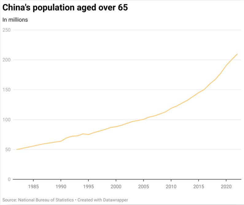 Between 2023 and 2030, the overall decrease in Chinese population is only 5 million. However, the qualitative change starts to manifest. China would have lost 60 million in the 0-14 age group due to declining birth rates but would have added 60 million aged people who are above 65. This is because of increasing lifespans. Considering that 60 is the retirement age in China, a deeper look indicates 1/4th the population will be in the 60+ age group. In the same time frame China would have also lost 5 million working hands. By 2030 China will feel the burden of aging.