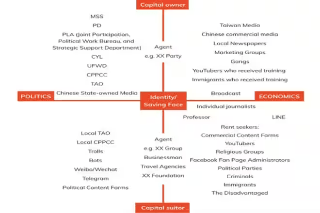 Before seeing what the Chinese are up to now, it will do us well to know that their meddling in Taiwanese politics is not new. It is well documented. A report by Double Think labs on China’s Information Operation during the Taiwan’s 2020 Election is illuminative ( available at https://medium.com/doublethinklab/deafening-whispers-f9b1d773f6cd) . This report makes it very clear that in 2020, China operated on multiple lines to impress upon the Taiwanese to vote the way PRC wants to or not vote at all. This blog contains a matrix which indicates the complexity and detail of the Chinese operation (reproduced here). Every possible source and method was utilised in 2020 – government agencies, all forms of social and public media, criminal enterprises, religious groups, political channels, businesses, immigrants, et all. The campaign was masterminded by the most significant offices of the PRC . Yet it failed. It did not stop Tsai Ing Wen to win the election in 2020. However it has not stopped China from repeating its antics now. In fact the Chinese meddling is scaling new heights of cognitive warfare.