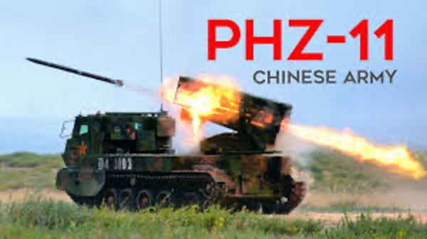 PHZ-11 122mm Multiple Launch Rocket System. In 2020 the PLA show cased the PHZ-11 122mm Multiple Launch Rocket System (MLRS) on tracked chassis. It is reportedly now in service with its Heavy Combined-Arms Brigade of the 76 Group Army in Western Theatre Command[18]. It is on the same tracked chassis as the PLA’s 155mm self-propelled howitzer. It is operated by a crew of three which includes a driver, gunner and commander. It is fitted with two pods of 20 launchers that are arranged in four rows of five tubes. It can be fired from the crew cabin. The vehicle might be fitted with a land navigation system (LNS) and a computerized Fire-Control System (FCS) which allows for autonomous operation. It can fire different types of unguided solid propellant 122 mm rockets including mine laying, fuel-air explosive, HE High Explosive, steel ball HE, and steel ball HE incendiary with a range from 15 km to 30 km[19]. In simple terms it is a GRAD BM 21 on tracks.