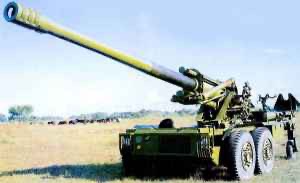 PLL01/ W88/890. This is a gun-howitzer of 1987 vintage. It was the first PLA artillery system which adopted the NATO-standard 155mm calibre. The gun is based on the Austrian GHN-45 technology. Later, the PLA developed its own version of the 155mm/45-calibre howitzer known as W88. This was designated as PLL01. This basic gun design was used to develop the PLZ45 self-propelled gun-howitzer system. This is a 45 calibre gun with a range of 24km with normal ammunition, 30km with the extended-range full-bore (ERFB) rounds and approximately 39km with the extended-range full-bore base bleed (ERFB-BB) rounds. It has a max MV of 903m/s. It has an intense rate of fire up to 4 rounds per minute and normal rate of fire of 2 rounds per minute. Most of its systems are hydraulically operated. The basic power is derived from a 77 hp APU that can achieve speeds up to 18km/h with a range of 80km. The carriage has four large wheels. It has a swing around barrel which reduces the length of the howitzer from 13m to 9m when towed. The PLL01 has a combat weight of 12 tons (with APU) and 9.8 tons (without APU). The howitzer is towed by an 6X6 truck at a maximum speed of 90km/h. A light weight variant has also been inducted which is fitted on the two-wheel carriage of the Chinese 130mm field gun. However, this variant is less stable when firing[11]. This is similar to our Soltamisation. The ATAGS when inducted will be a magnified and modernised version of this gun.