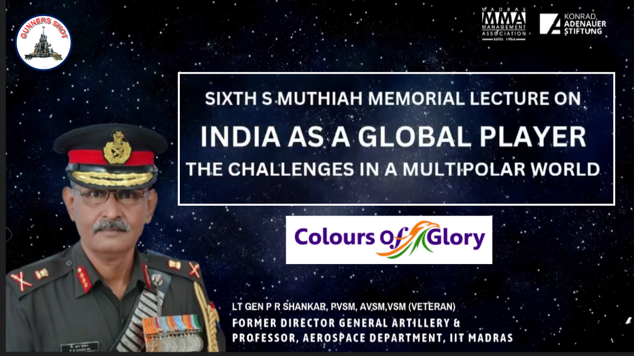 I had the privilege and honour to give talk on India as a Global Player and Challenges in a Multipolar World during the Sixth S Muthiah Memorial Lecture Organised by Colours of Glory and The Madras Management Association. The event was well attended and the QnA session was thought provoking.