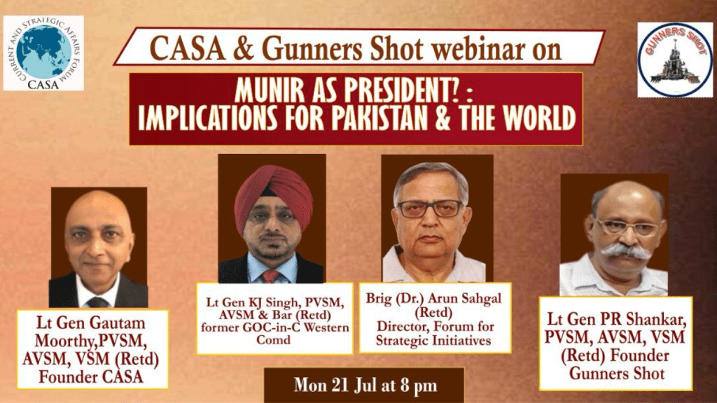 The CASA Webinar on Asim Munir as the President of Pakistan was fascinating. There are good reasons as to why he will not attempt to be the president. There are equally good reasons why he might effect a roof coup to become the president. In all cases the basic configuration of Pakistan as the Military State will n to change. Chances of any change in Pakistan’s attitude post Op Sindoor are also remote since they believe that they have won a military and diplomatic victory over India.